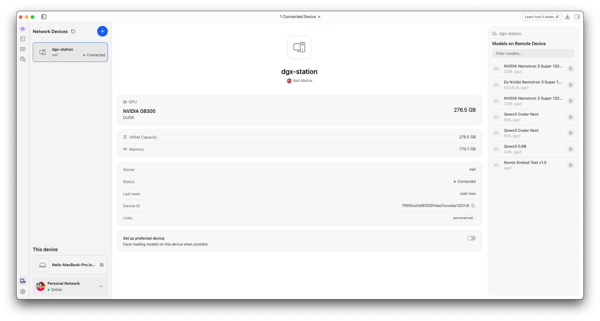 Alternatively, you can also make the Station your on-premises LLM server by connecting to the Station's LLM server from other devices on the same network. Feel free to reference the same guided set up provided in our DGX Spark playbook.