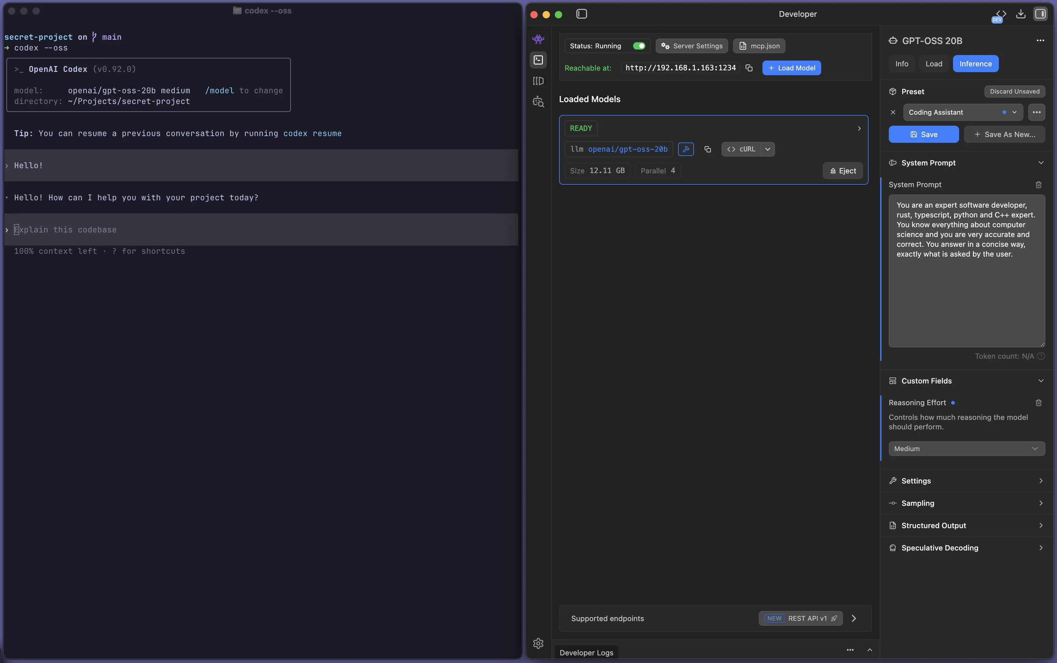 Codex configured to use LM Studio via the OpenAI-compatible API