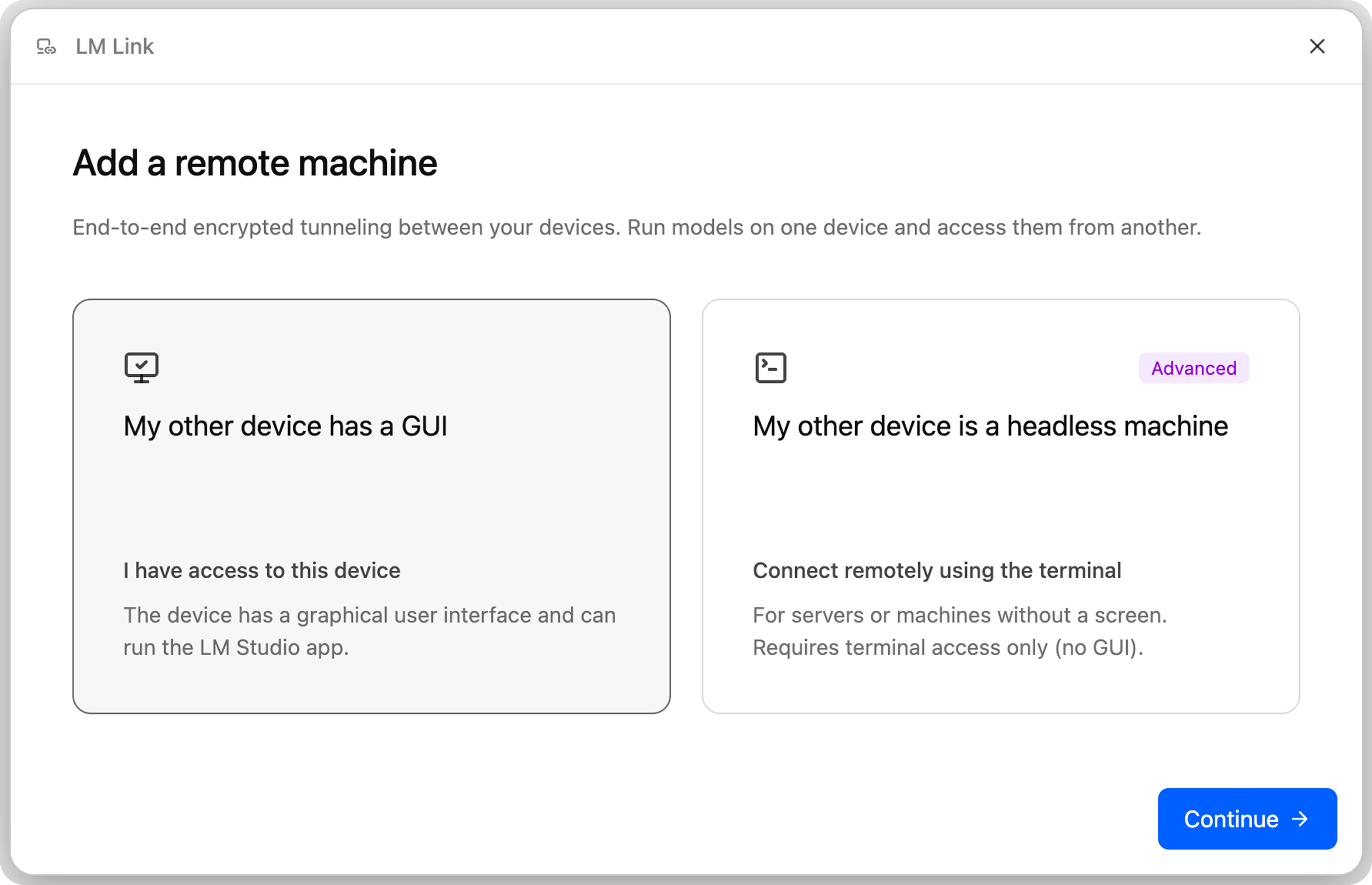 To add a headless machine, connect remotely by using llmster in the terminal:
