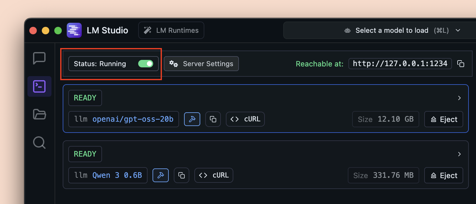 LM Studio provides a REST API that you can use to interact with your local models from your own apps and scripts.